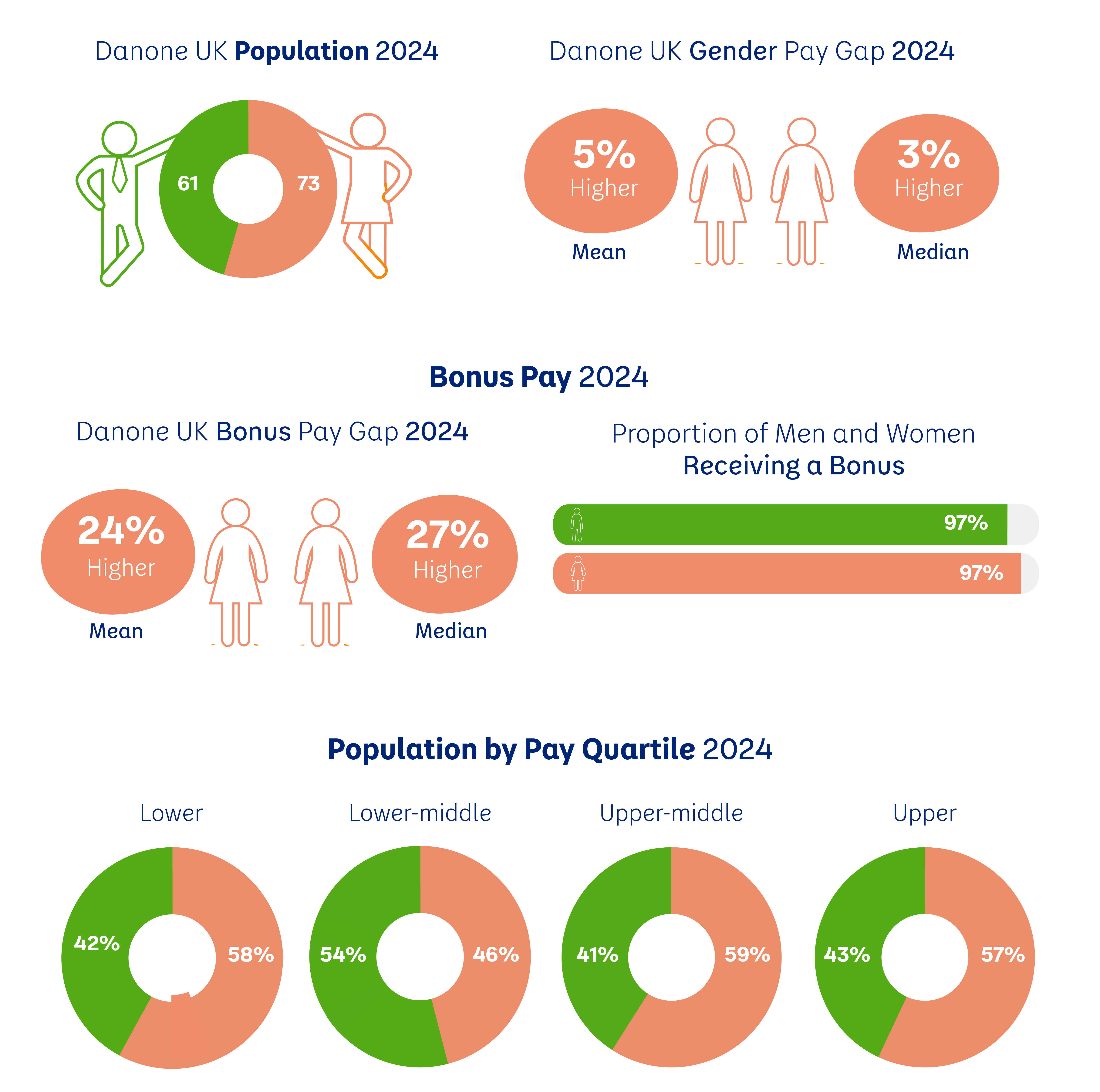 Once again, this year’s publication reports on the combined gender pay gap for our entire UK business. We have chosen to go beyond the Gender Pay Gap regulations, which require reports for organisations with more than 250 people. Our Alpro business features for the fifth time, reinforcing our commitment to fairness and equity across our full UK operation and tracking progress across all our locations.